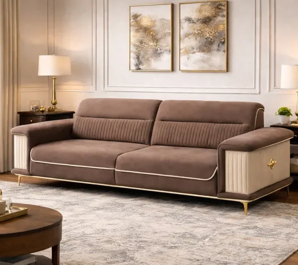 Upgrade your living space with this stylish brown and beige 3 seater sofa, featuring a premium dual-tone design and perfectly balanced seating. Crafted with modern aesthetics and luxury detailing, this sofa offers both visual appeal and exceptional comfort.