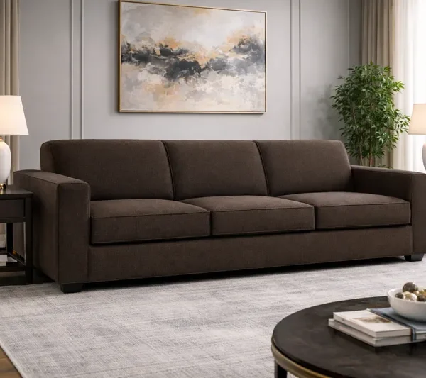 This sofa features a straight-line silhouette with wide square armrests, giving it a bold and modern appearance. The deep brown color adds warmth and sophistication to your living room.Premium Comfort & Durability