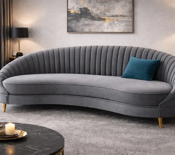 Add a bold and sophisticated statement to your living space with this luxurious curved dark grey sofa. Designed with a smooth flowing shape and elegant channel tufted detailing, this sofa offers a perfect blend of modern aesthetics and premium comfort.