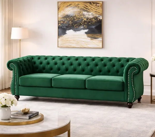 Upholstered in premium velvet/fabric, the sofa offers a soft, smooth, and luxurious finish. The material is durable, breathable, and easy to maintain for everyday use.Customization Available