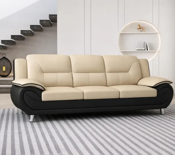 This sofa features a premium combination of soft beige seating with a bold black base, creating a striking and modern contrast. The clean lines and curved edges add a sophisticated touch to your living room.Updated Metal Legs Finish