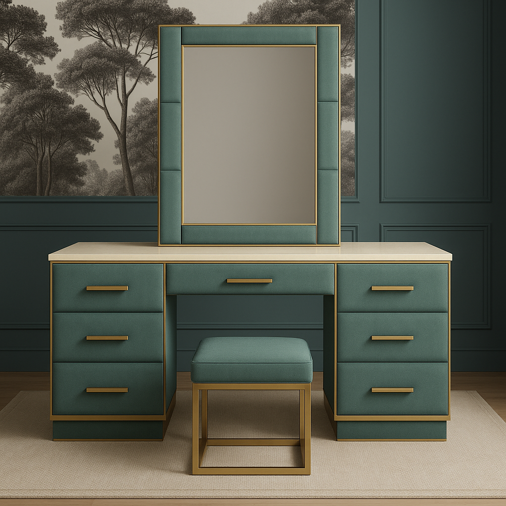 beautifully crafted makeup vanity. The design blends modern sophistication with