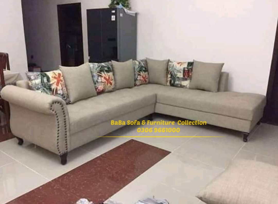 A luxurious cream & gold bedroom suite — padded headboard bed paired with an elegant makeup vanity.