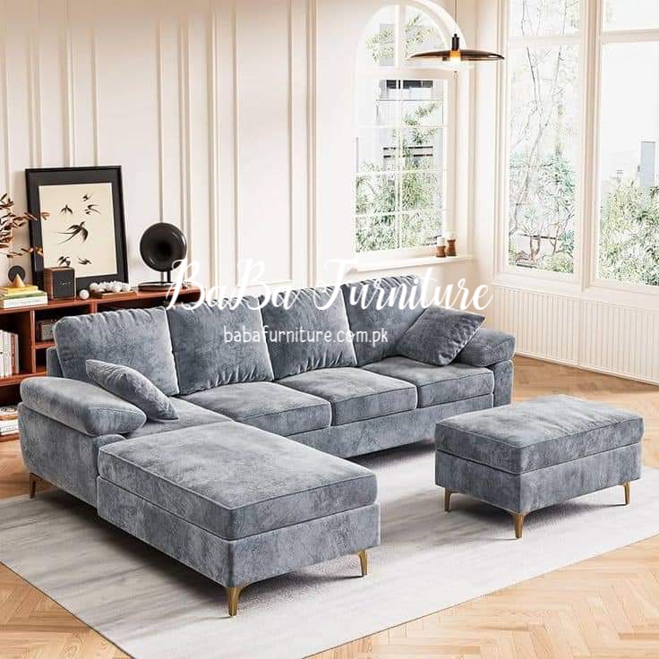 A luxurious cream & gold bedroom suite — padded headboard bed paired with an elegant makeup vanity.