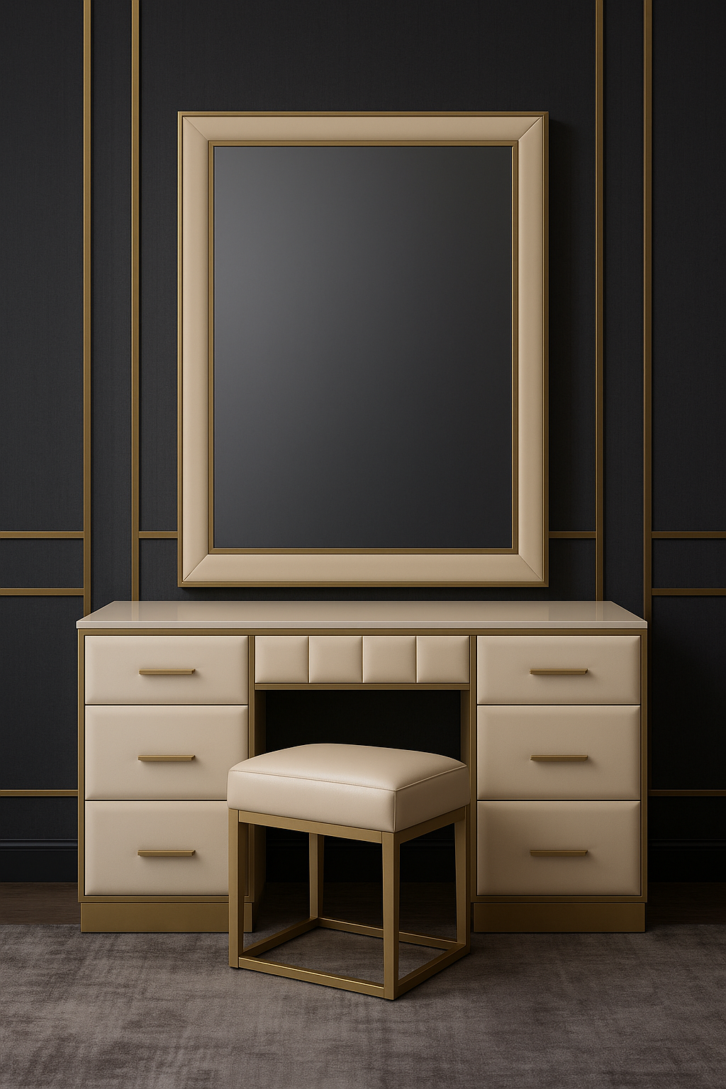 1x Regalia Cream Gold Bed (King/Queen options), 1x Matching Makeup Vanity with stool,