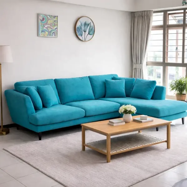 Enhance your living space with this modern L-shape corner sofa, designed to deliver maximum comfort, style, and smart space utilization. With its clean design and spacious layout, this sofa is perfect for contemporary homes and family lounges.